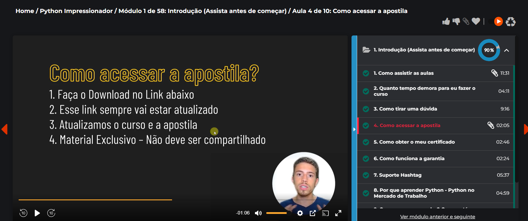 Importante: Os cursos bônus não possuem apostilas por serem um conteúdo complementar para enriquecer os estudos, porém quando necessário, o material utilizado é disponibilizado na área de downloads abaixo da vídeo aula