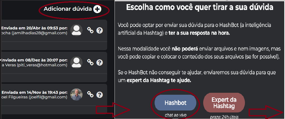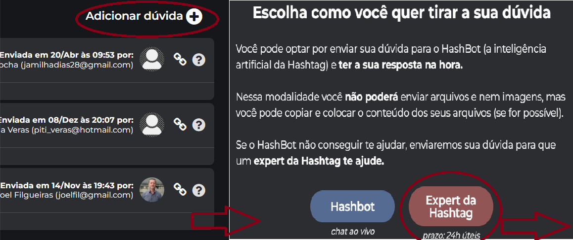 - Expert da Hashtag: nossos especialistas respondem suas dúvidas em um prazo de até 24h úteis.