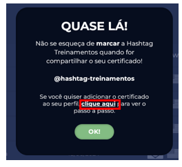 Após o clique, um passo a passo de como postar abrirá. Preste atenção e siga todos os passos ali presentes para realizar a inserção do seu certificado em seu LinkedIn.
