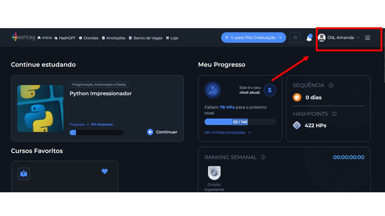 Acesse o nosso portal (portalhashtag.com), e clique no menu à direita suoerior, como mostra o exemplo da imagem: