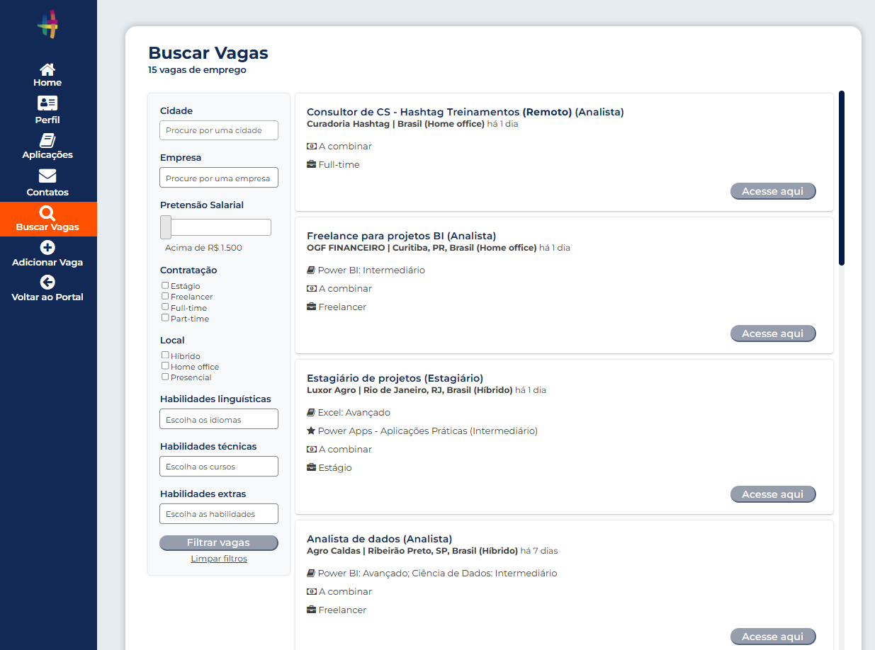 Ao encontrar uma vaga que lhe interesse, clique em “Acesse Aqui” para ver mais detalhes.