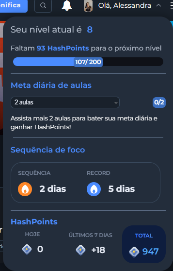 A sua jornada de aprendizado acaba de ficar ainda mais envolvente e motivadora. Com o novo Sistema de Gamificação, você pode acumular HashPoints enquanto avança nos estudos, bate suas metas diárias e desbloqueia novas conquistas.