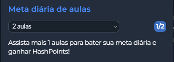 O usuário pode definir uma meta diária de aulas entre duas, cinco, dez, quinze ou vinte e ganhar HashPoints extras ao atingi-la. Se a meta for alterada, a nova só entra em vigor no dia seguinte.